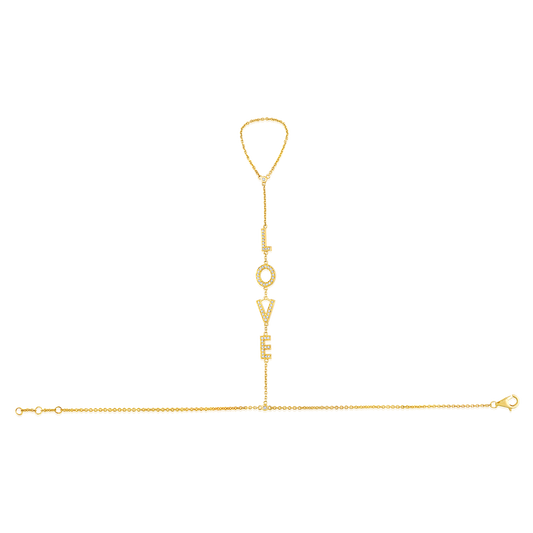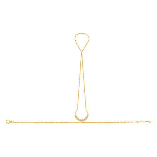 14k Yellow Gold Diamond Teardrop Accent Hand Chain