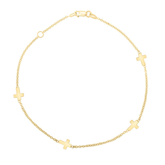 14k Yellow Gold Dainty Sideway Cross Bracelet