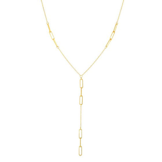 14K Yellow Gold Paperclip Lariat Necklace