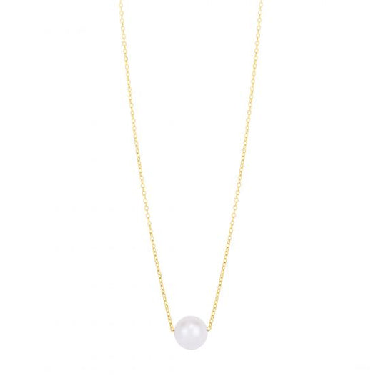 14K Yellow Gold Pearl Necklace Solitaire