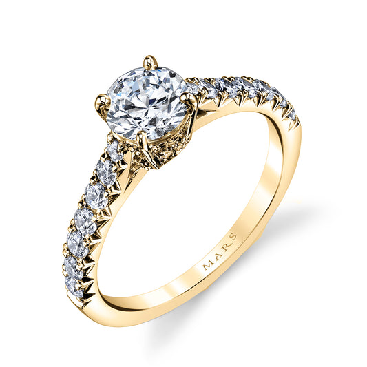 Mars Oval Engagement Ring with Hidden Halo 14K Yellow Gold
