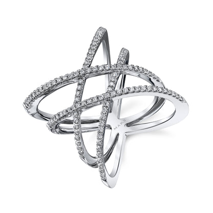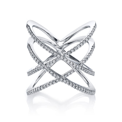 This exquisite 0.41-carat diamond band, set in 14k white gold, features a captivating crisscross "X" design that adds a touch of sophistication and brilliance to any ensemble.