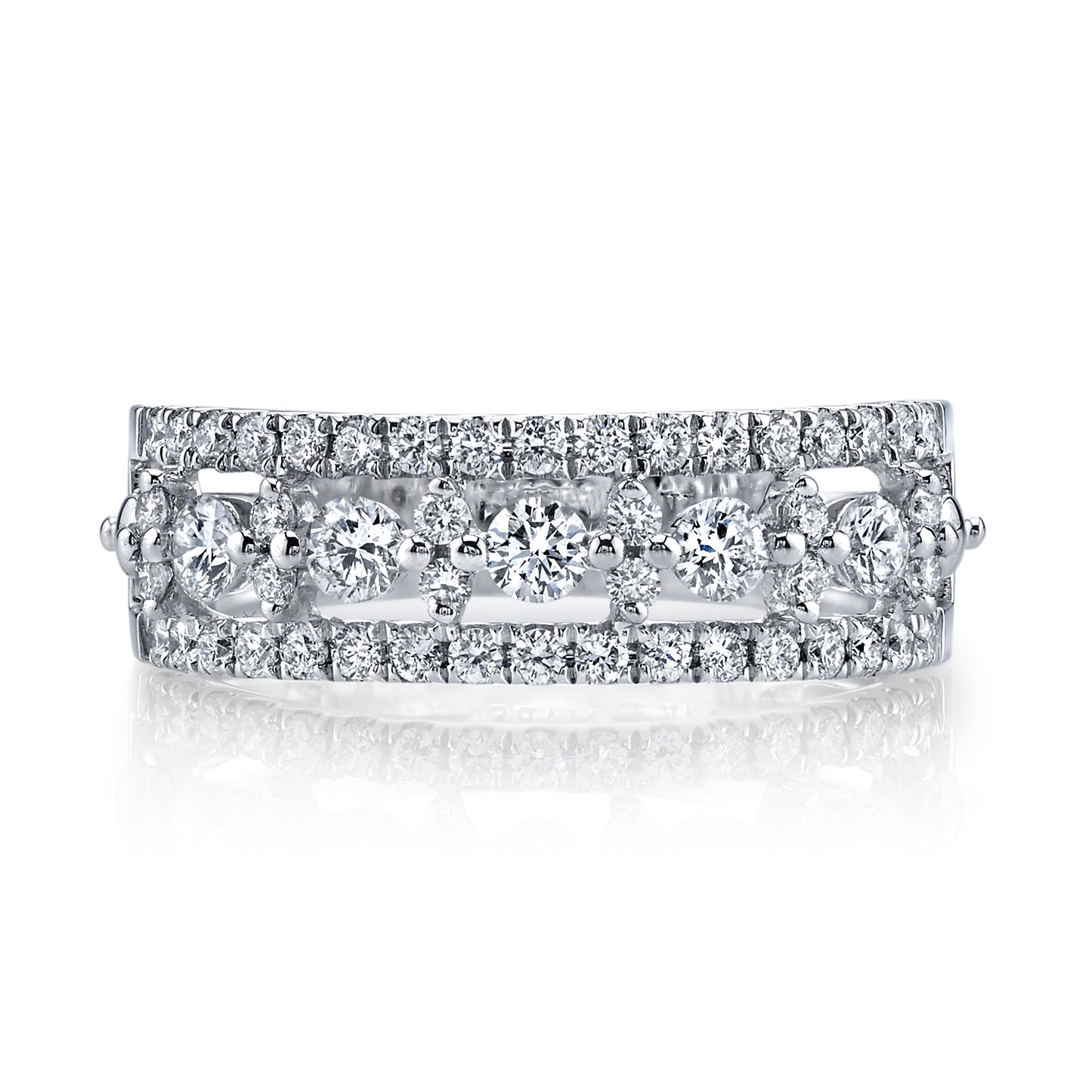 Celebrate your special milestone with this elegant 0.78 CRT Anniversary Band, featuring a timeless prong setting that highlights its classic design. Perfect for marking unforgettable moments with lasting beauty.