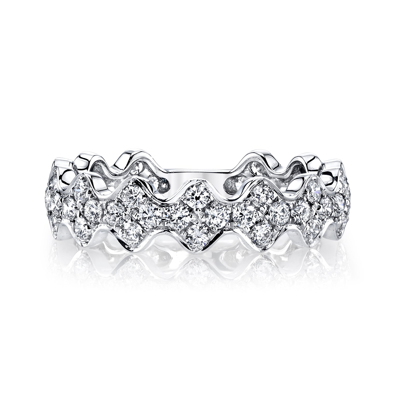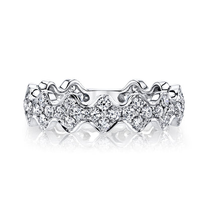 This 14k white gold band features a dazzling 0.96-carat cluster design, making a bold statement with its elegant sparkle.