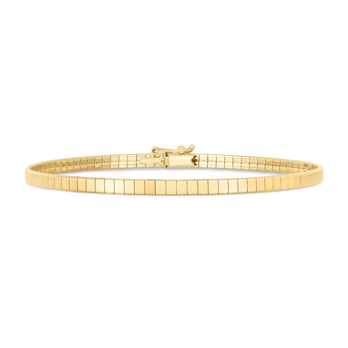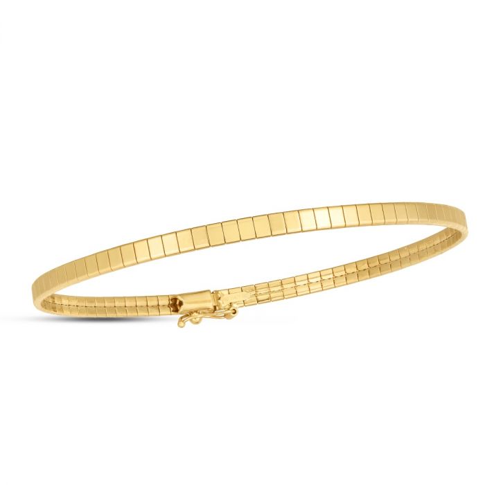 Unleash your inner strength and elegance with our 14k Brick Omega Bracelet, complete with a secure box clasp.