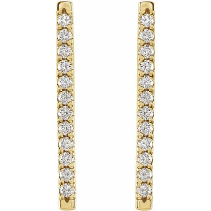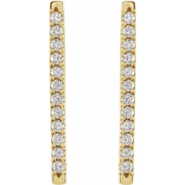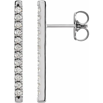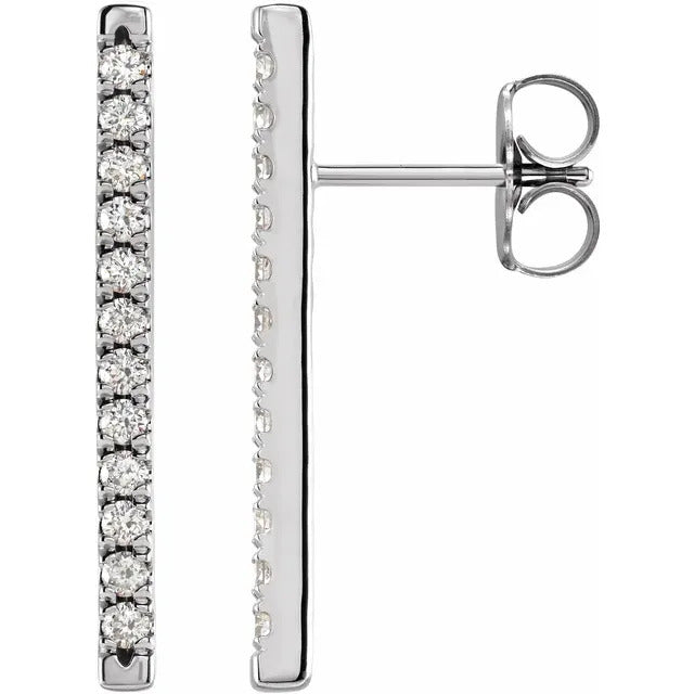 Indulge in timeless elegance with our exquisite 14K 1/3 CTW Natural Diamond French-Set Bar Earrings, crafted to captivate. Designed to elevate any ensemble, these earrings feature stunning natural diamonds delicately set in lustrous 14K gold, exuding sophistication and refinement. Perfect for adding a touch of luxury to any occasion, these French-set bar earrings are a must-have addition to your jewelry collection.