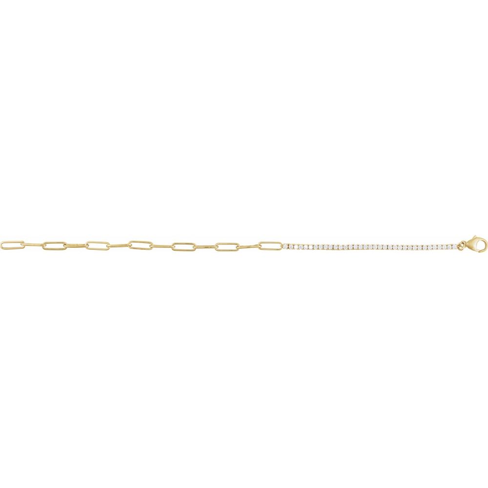 14k Gold Half Tennis and Half Paperclip Diamond Bracelet