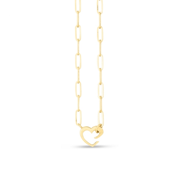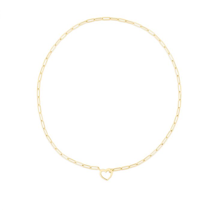 Unlock your heart with our elegant 14K Paperclip Push-Lock Heart Necklace. Made of high-quality 14K yellow gold, this 18" necklace features a charming heart element and a convenient push-lock opening. Add a touch of sophistication and love to your wardrobe.