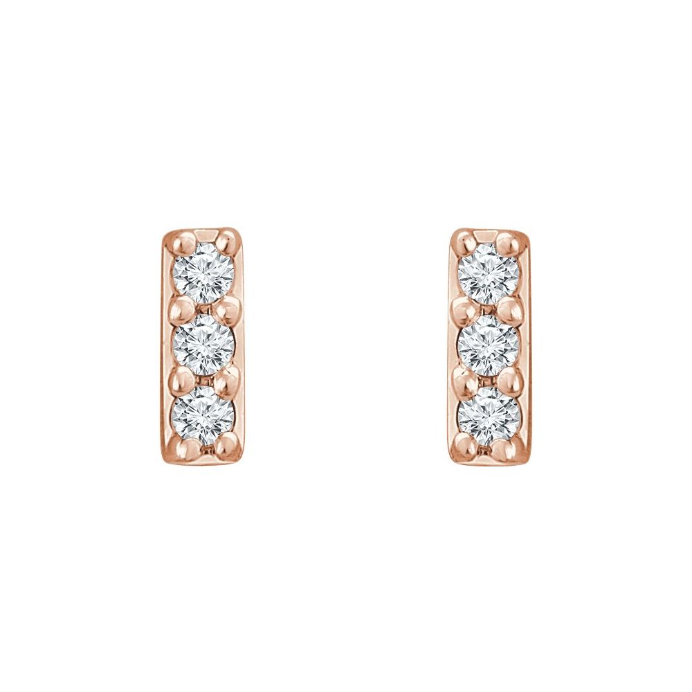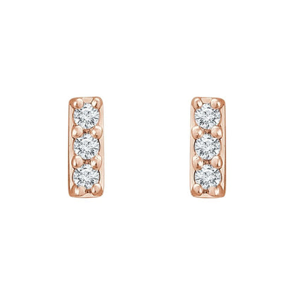 14K Rose .05 CTW Lab-Grown Diamond Bar Earrings featuring round, 1.2 mm lab-grown diamonds set in a polished bar design. Includes friction backs for easy and secure wear. Experience the stunning beauty of lab-grown diamonds while adding a touch of elegance to your look.