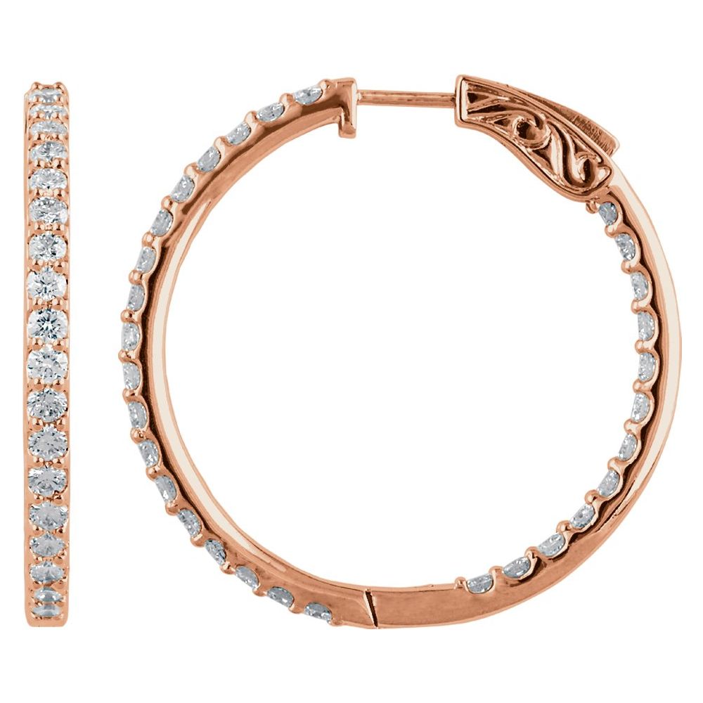 14K Rose 3 CTW Natural Diamond Inside-Outside 34.5 mm Hinged Hoop Earrings