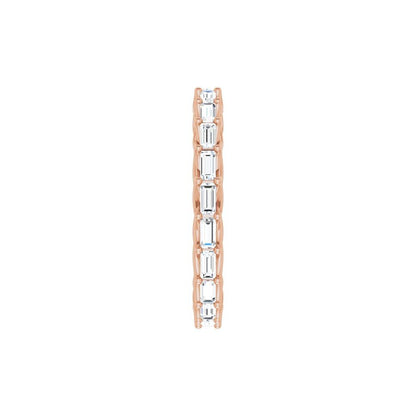 Experience everlasting love with our stunning 14K Rose Lab-Grown Diamond Eternity Band. Each round, 2 mm diamond is expertly set in a polished band, adding 3/4 CTW of sparkling beauty. Our Si2-Si3, G-I diamonds are lab-grown for ethical and sustainable luxury. Feel the romance and make a statement with this exquisite piece.