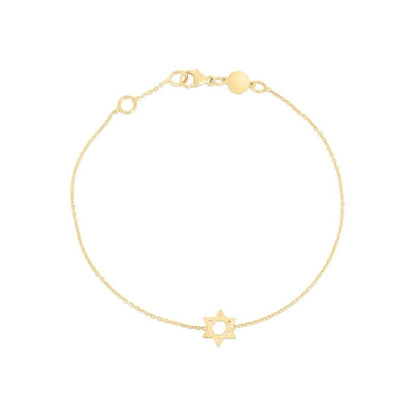 This elegant bracelet features a 14K gold Star of David, combining timeless symbolism with refined craftsmanship. Perfect for expressing your faith or gifting a meaningful keepsake, it adds a subtle yet powerful touch to any outfit.