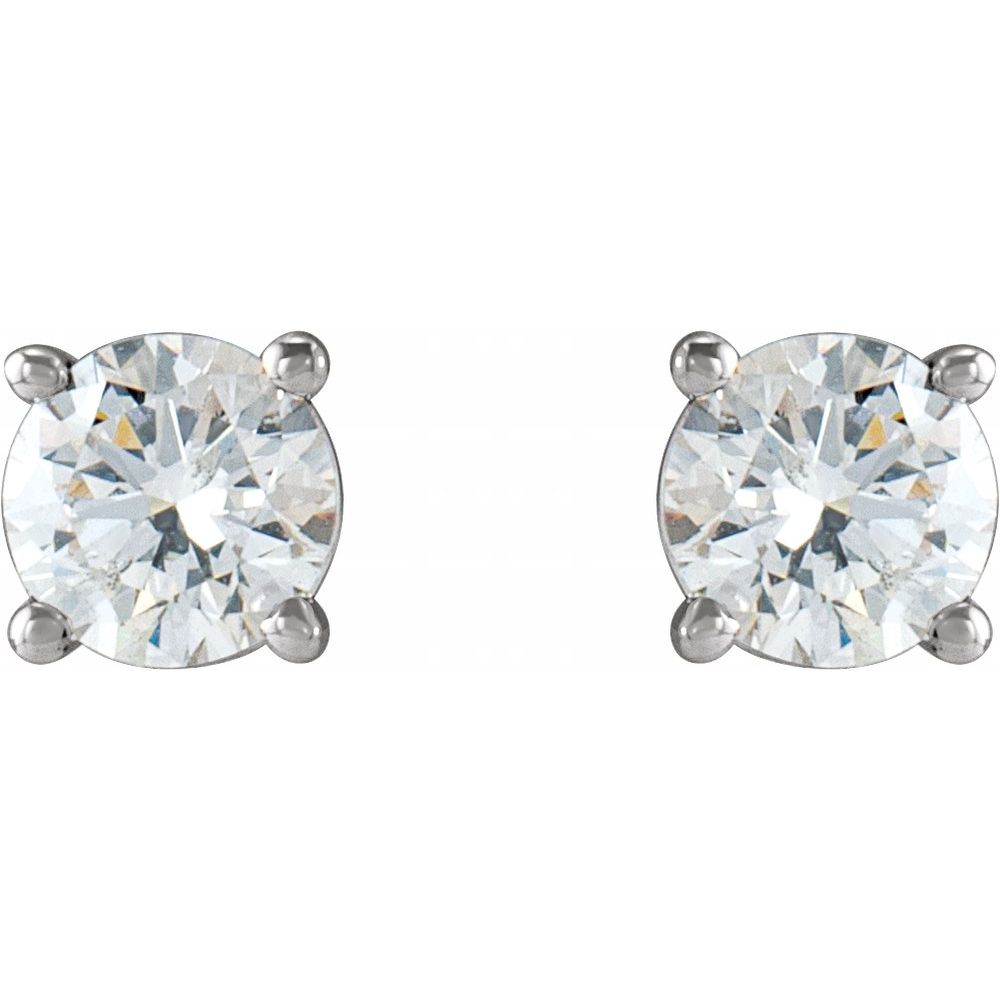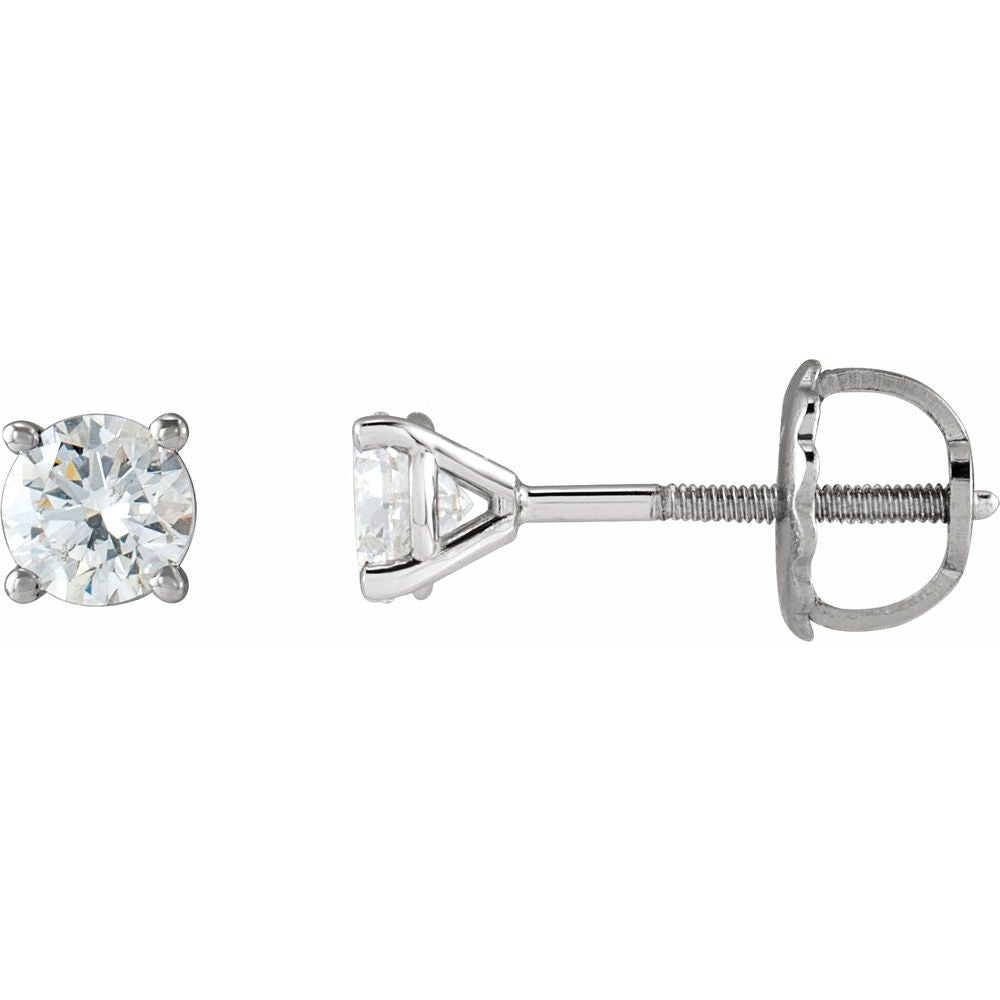 Enhance your style with these exquisite 14K White Natural Diamond Cocktail-Style Earrings featuring a dazzling 1/2 CTW pair of round diamonds. These earrings boast a brilliant I1, G-H clarity and come with threaded backs for secure and comfortable wear. The 4-prong setting adds extra sparkle to the polished finish, making these earrings a must-have for any occasion. Elevate your look with the 1/2 CTW Natural Diamond 4-Prong Cocktail-Style Earrings.