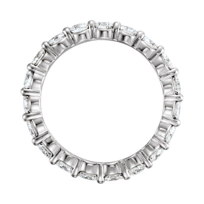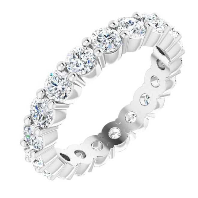 The 14K White 3mm Natural Diamond Eternity Band comes with a round cut diamond set, ranging from Si2-Si3 clarity and G-H color. Its total carat weight varies approximately up to 1 7/8 depending on your finger size.