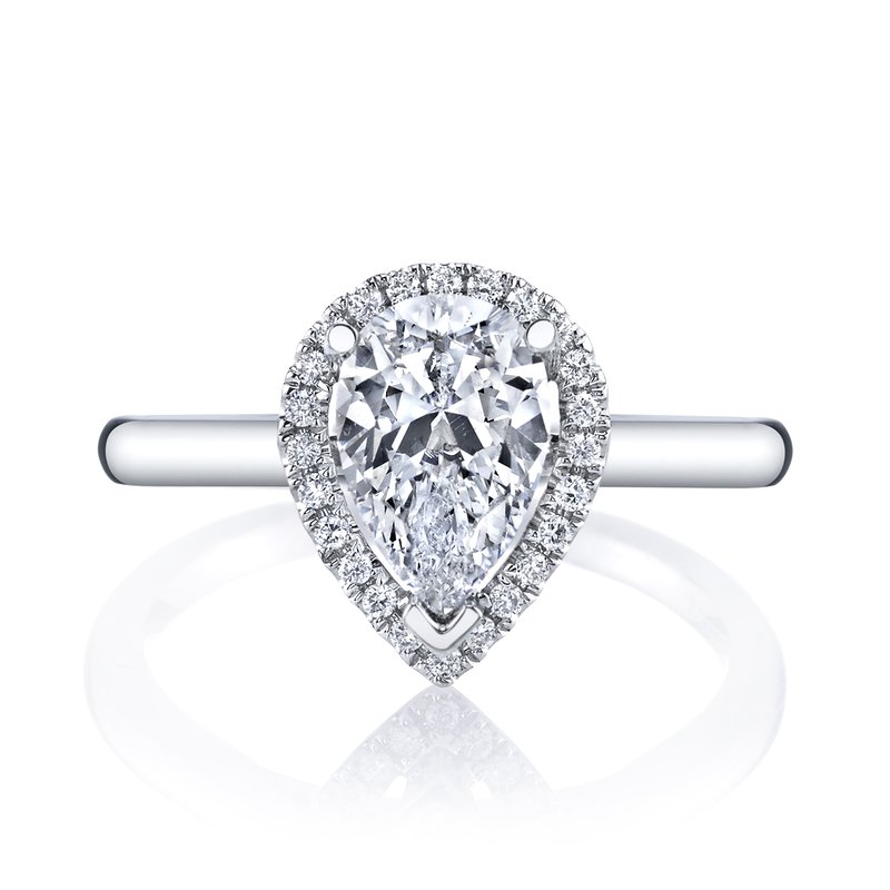 14k White Gold Engagement Ring Solitaire with Halo Set With 2.00 CRT Pear Shape Lab-Grown Diamond