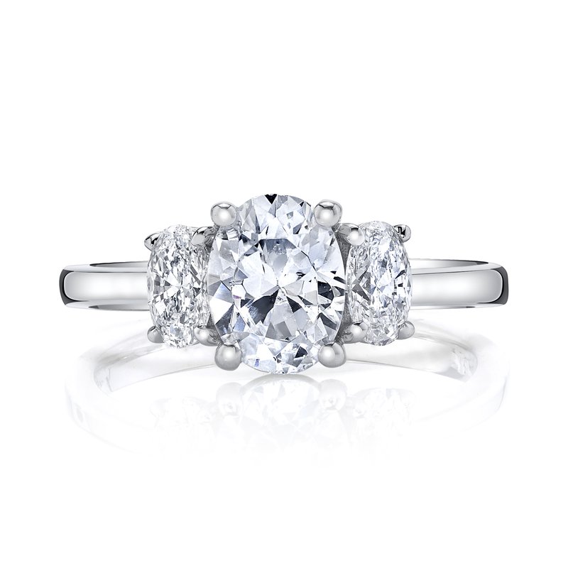 14k White Gold Three-Stone Engagement Ring Set With 3.00 CRT Oval Cut Lab-Grown Diamond