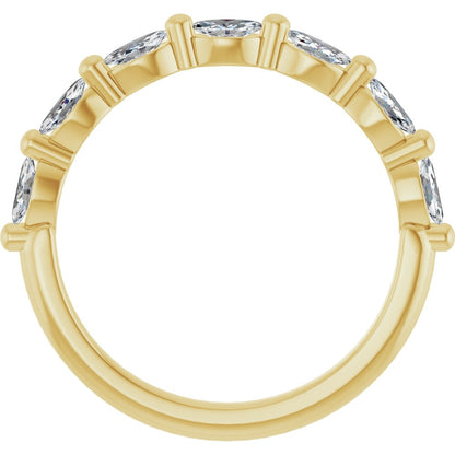 This 14K Yellow Lab-Grown Diamond Marquise ring features 4 X 2 mm diamonds and a polished finish, making it the perfect choice for an anniversary band with approximately 1/2 carat total weight.