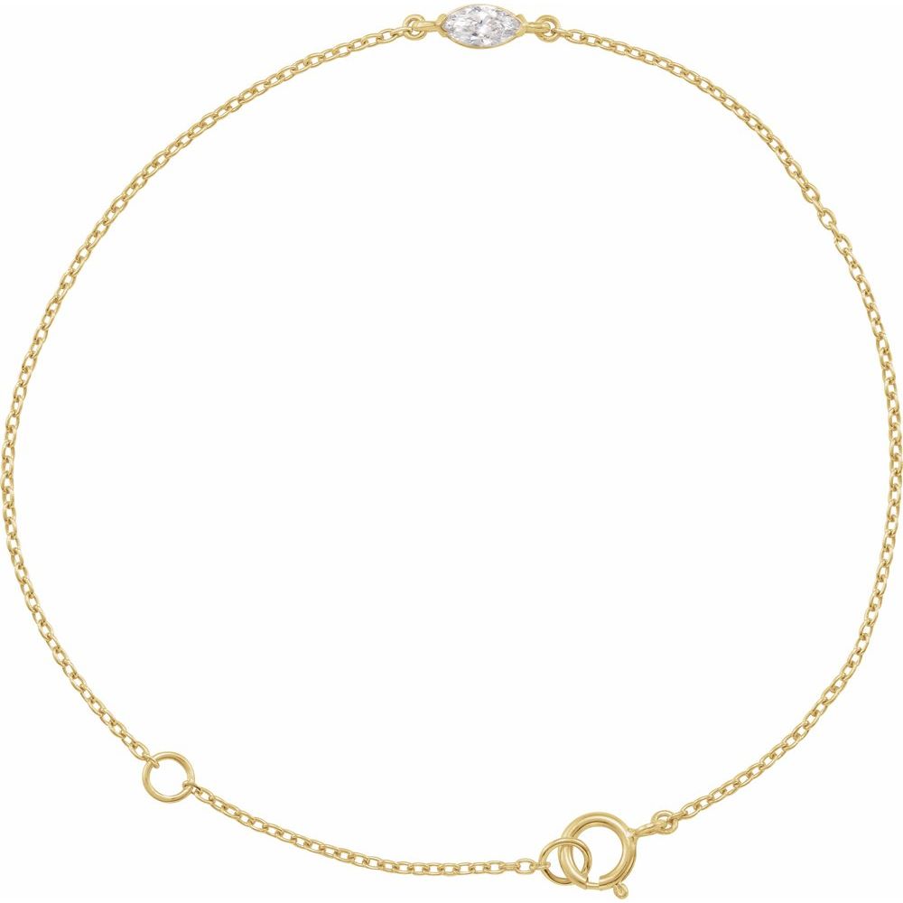 Elevate your jewelry collection with our 14k Yellow Gold 0.25 CRT Marquise Lab-Grown Diamond Bracelet. Crafted with stunning 14k gold and featuring a 0.25 CRT marquise lab-grown diamond, this bracelet adds effortless elegance to any outfit. Perfect for everyday wear and special occasions, give the gift of sparkle and luxury.
