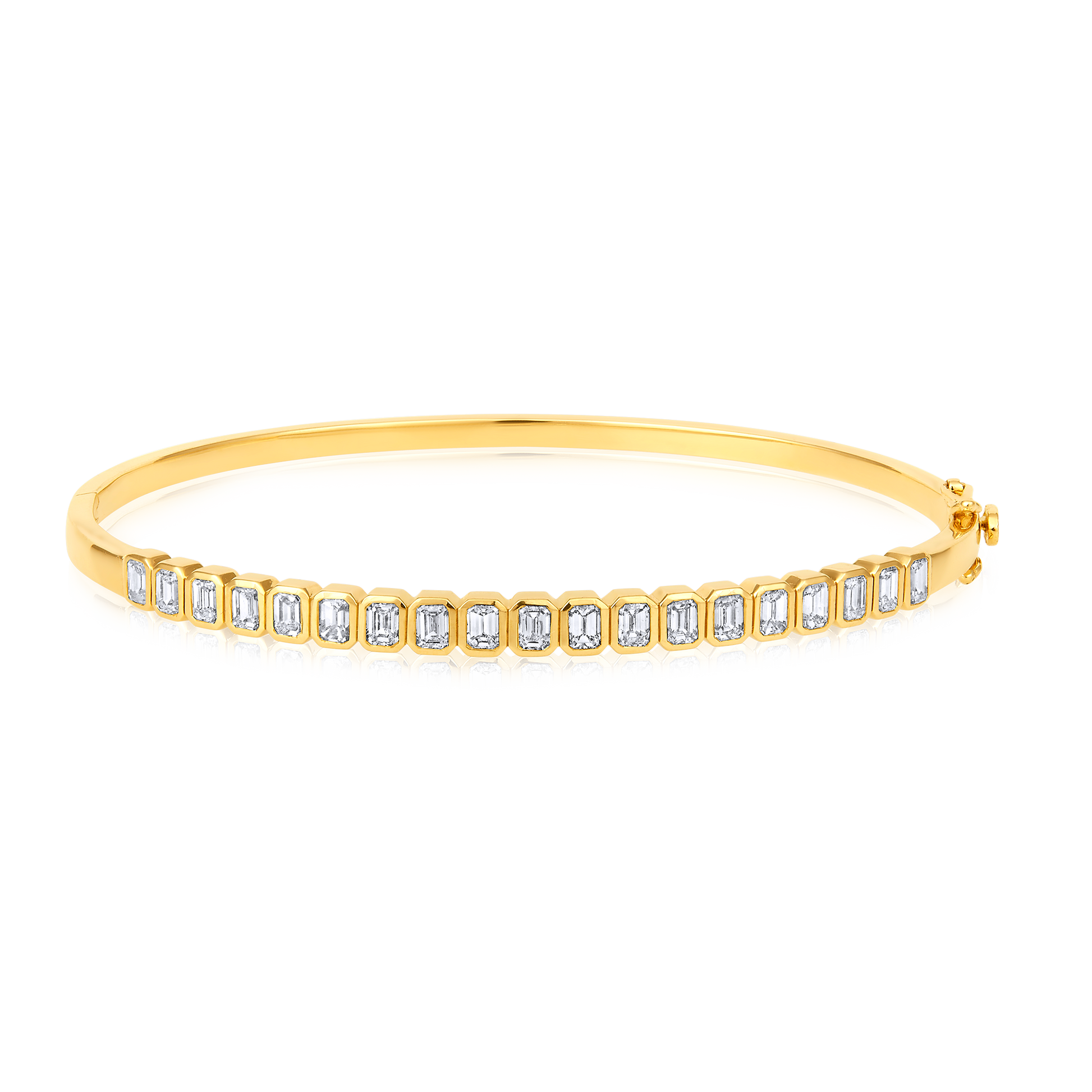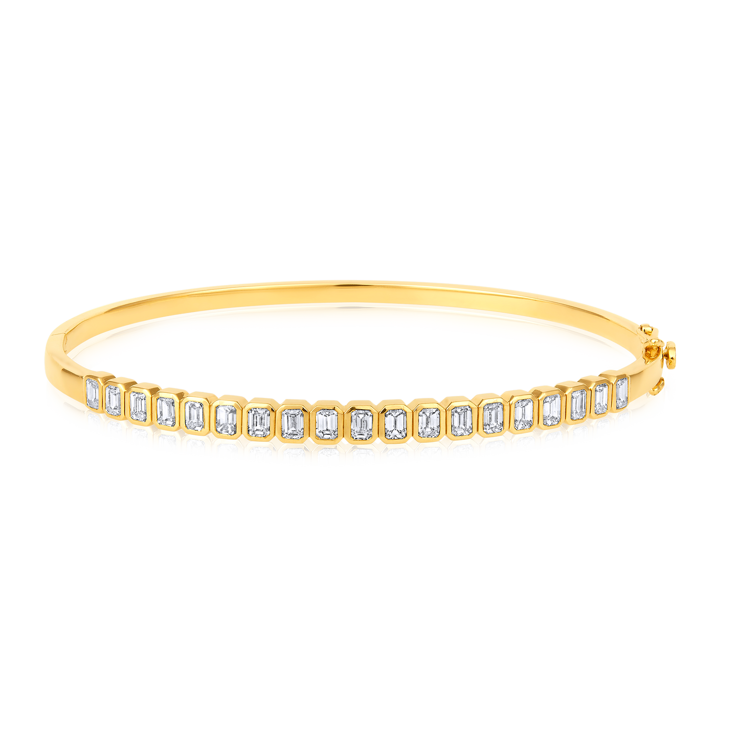 14k Yellow Gold Bangle Bracelet With Emerald Cut Diamonds