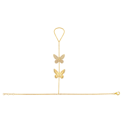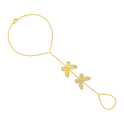 14k Yellow Gold Diamond Butterfly Hand Chain