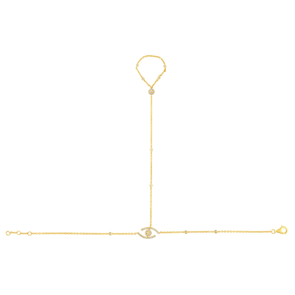 14k Yellow Gold Diamond Evil Eye Diamond Hand Chain