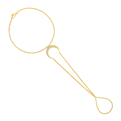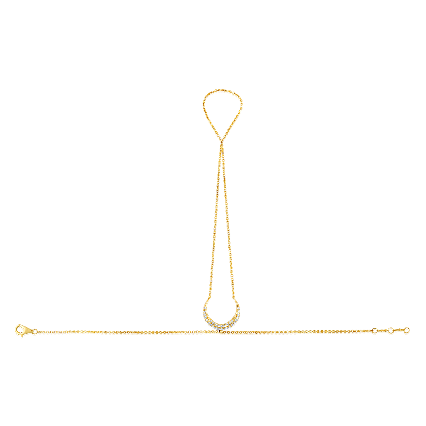 14k Yellow Gold Diamond Half Moon Hand Chain