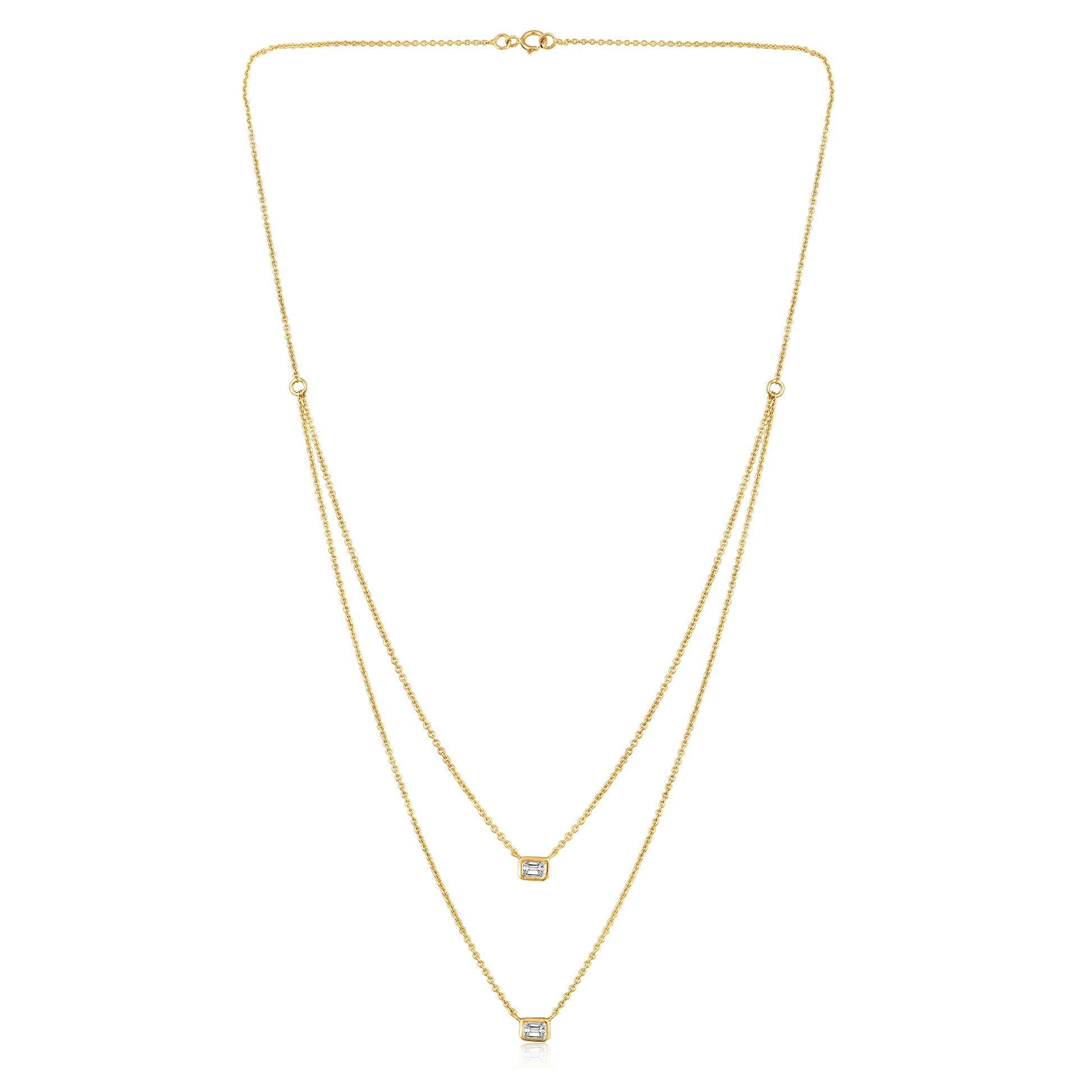 Enhance your look with our exquisite 14k Yellow Gold Double Layer Necklace, adorned with 0.42 CRT Emerald Cut Diamonds. This stunning piece will add a touch of elegance and sophistication to any outfit, making you shine bright like a diamond!