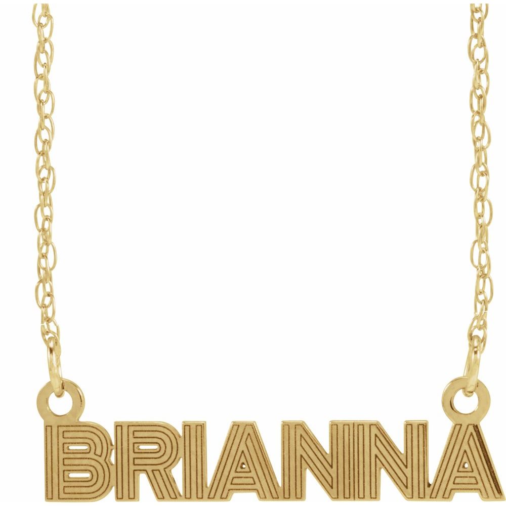 Experience the unique beauty and personalization of the 14k Yellow Gold Textured Nameplate, exclusively designed for you. Adorn yourself with this customizable piece, available in a versatile 16-18" length 25x4.5 mm in size.