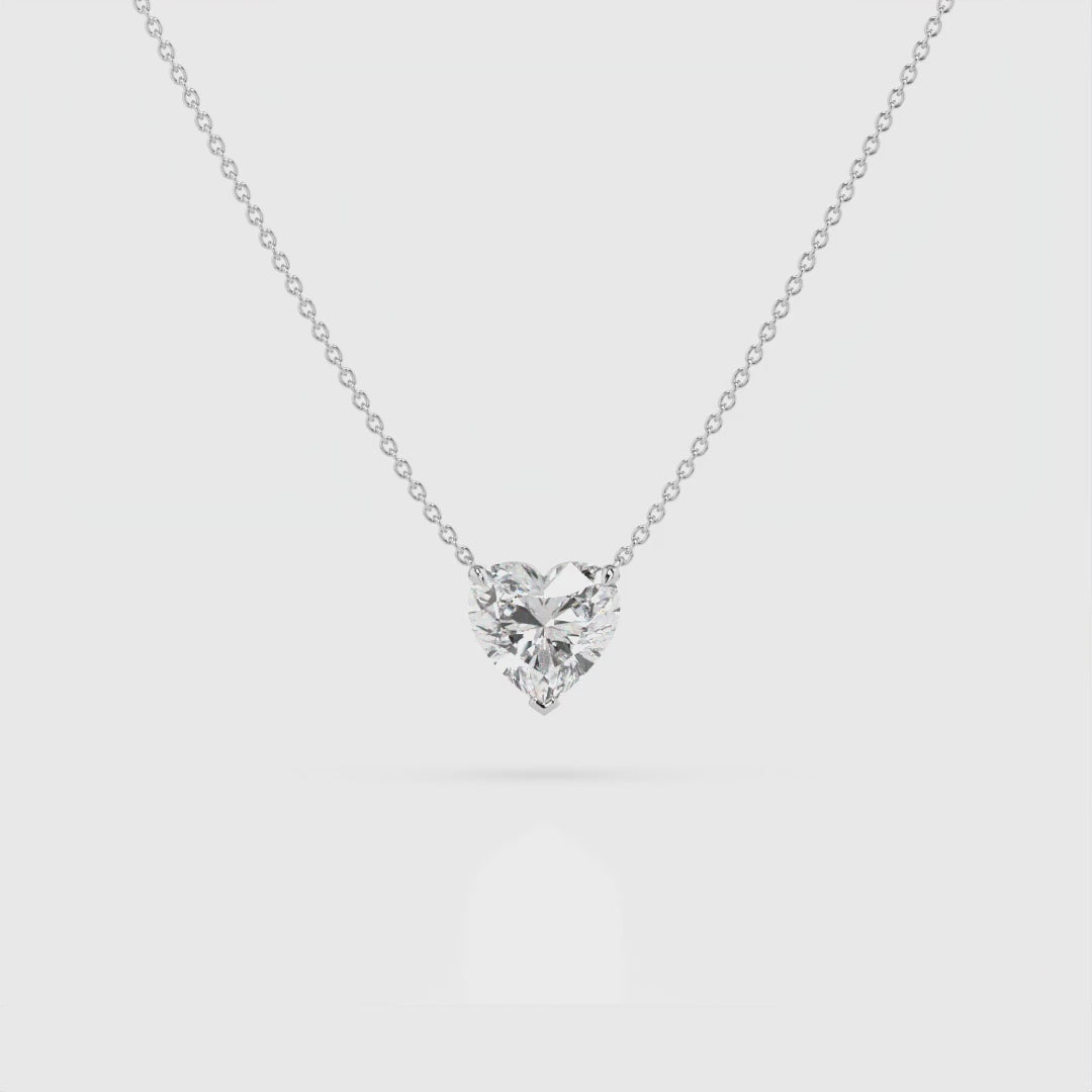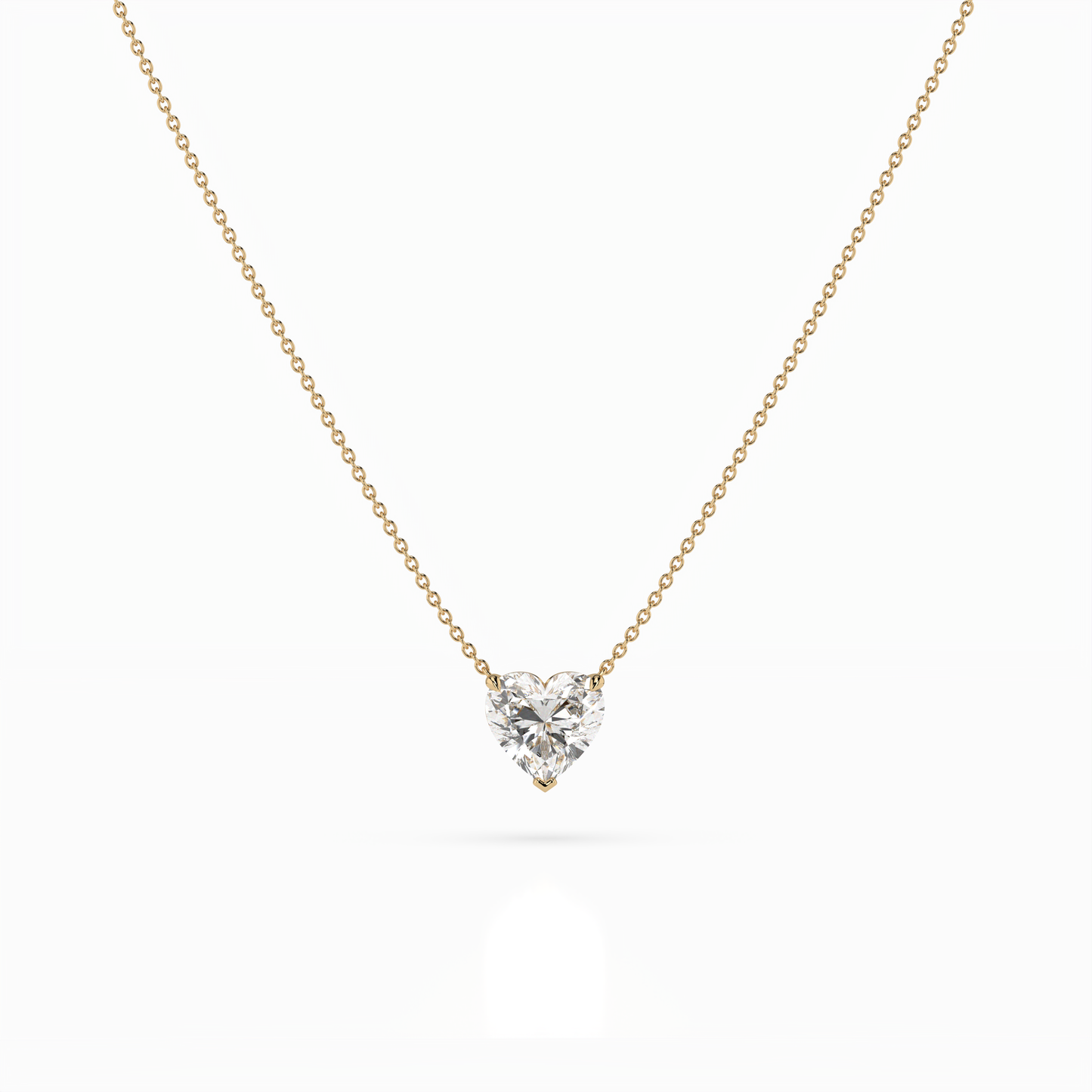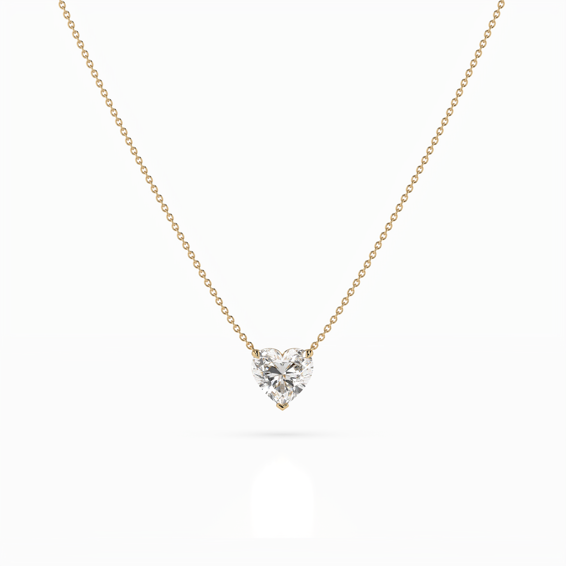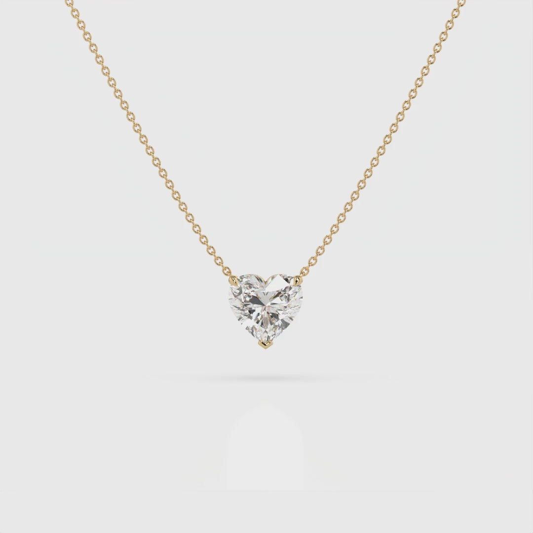 This breathtaking pendant features a stunning 2.50 CRT heart shaped diamond, certified as lab-grown with a (F) color and (VS-2) clarity. Available in 14k yellow, white, and rose gold as well as platinum, with an adjustable rolo chain for the perfect fit.