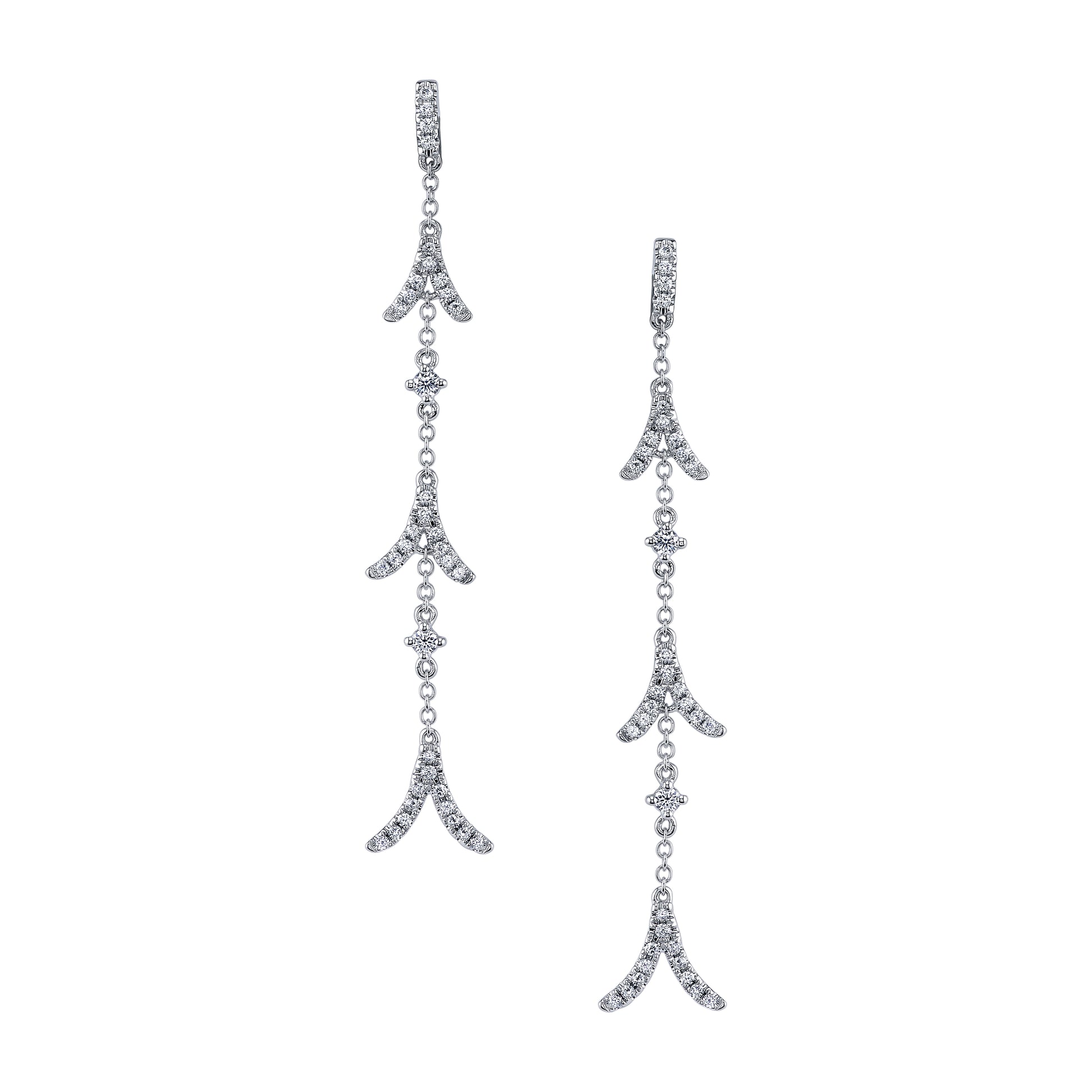 These Dangling Arrow Drop Earrings feature 14k white gold adorned with around 0.59 carats of sparkling round diamonds, offering a stunning and elegant accessory that captures attention effortlessly.