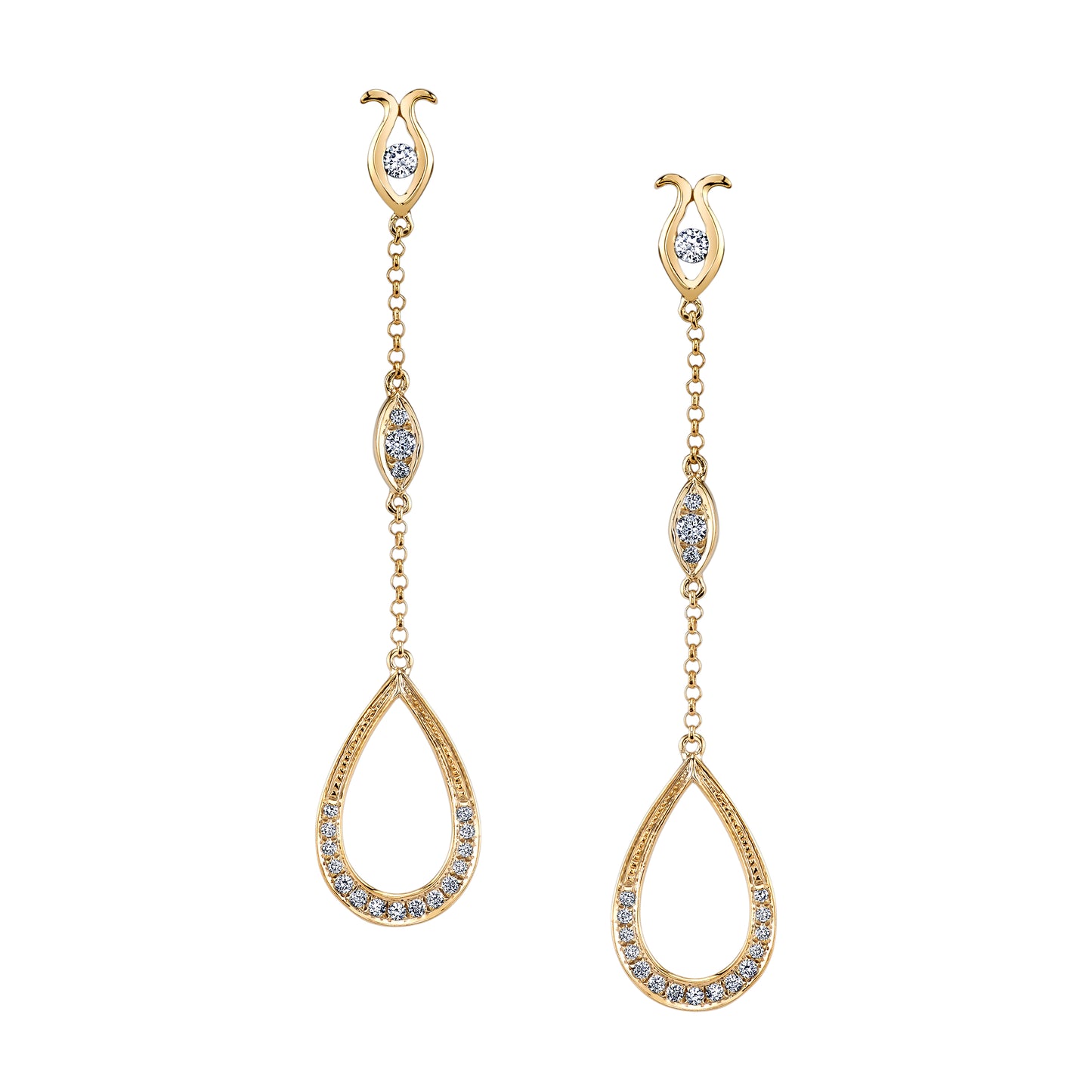 Dangling Open Teardrop Yellow Gold Earrings