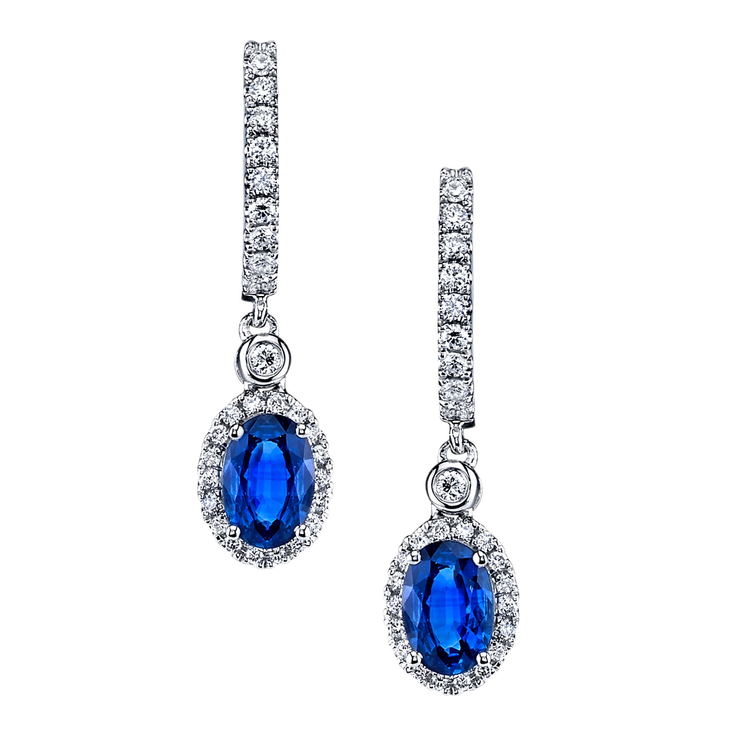 Dangling Oval Sapphire with Diamond Halo Earrings