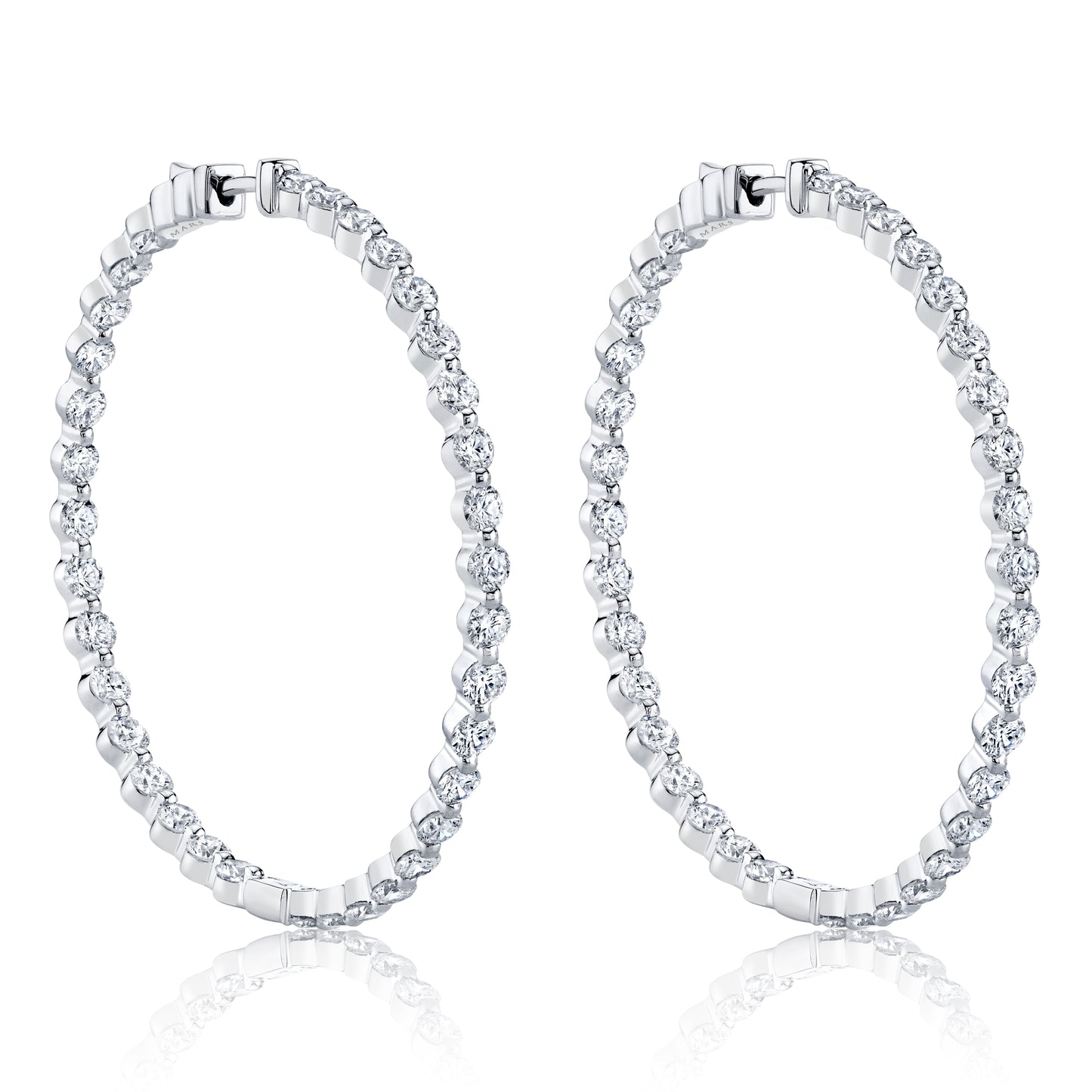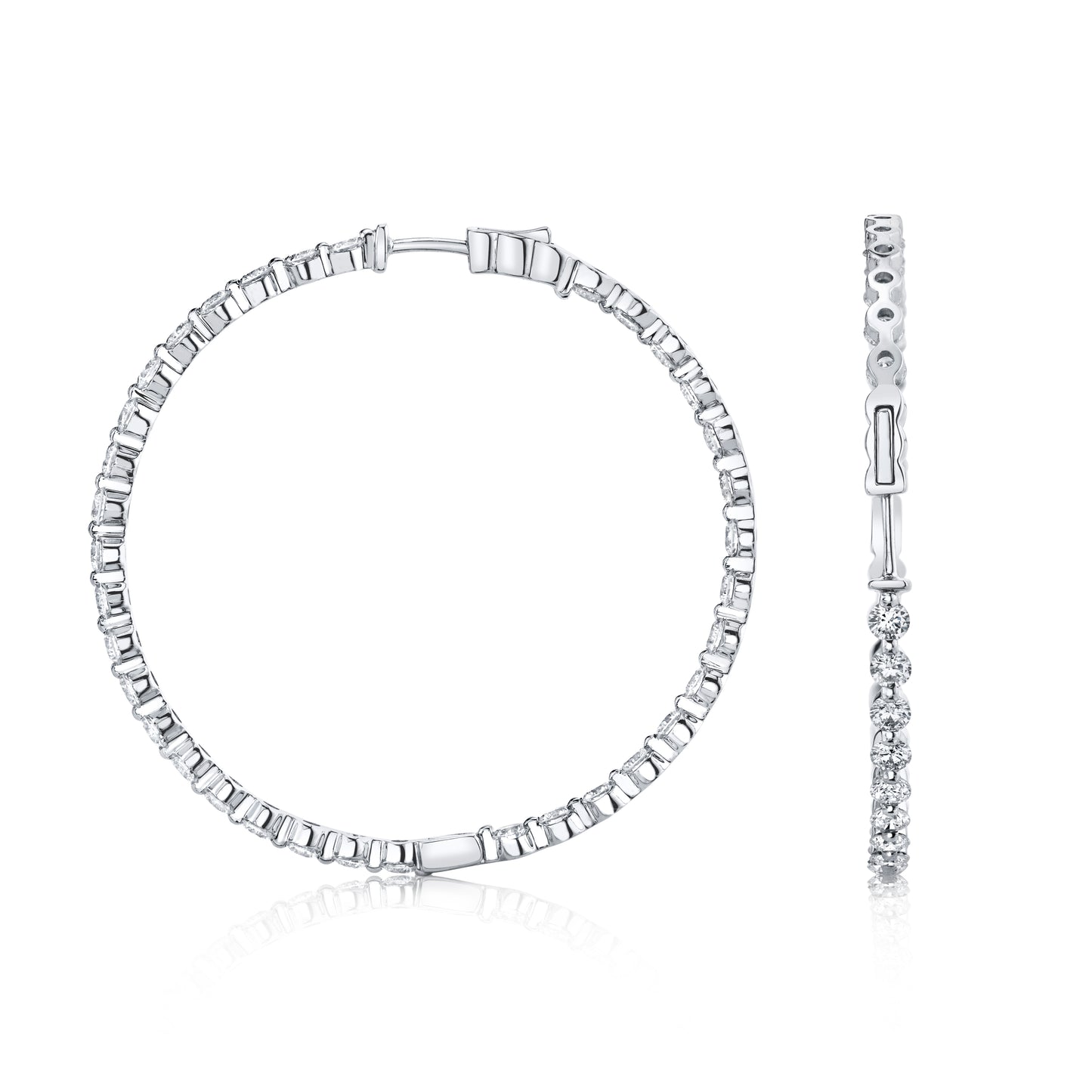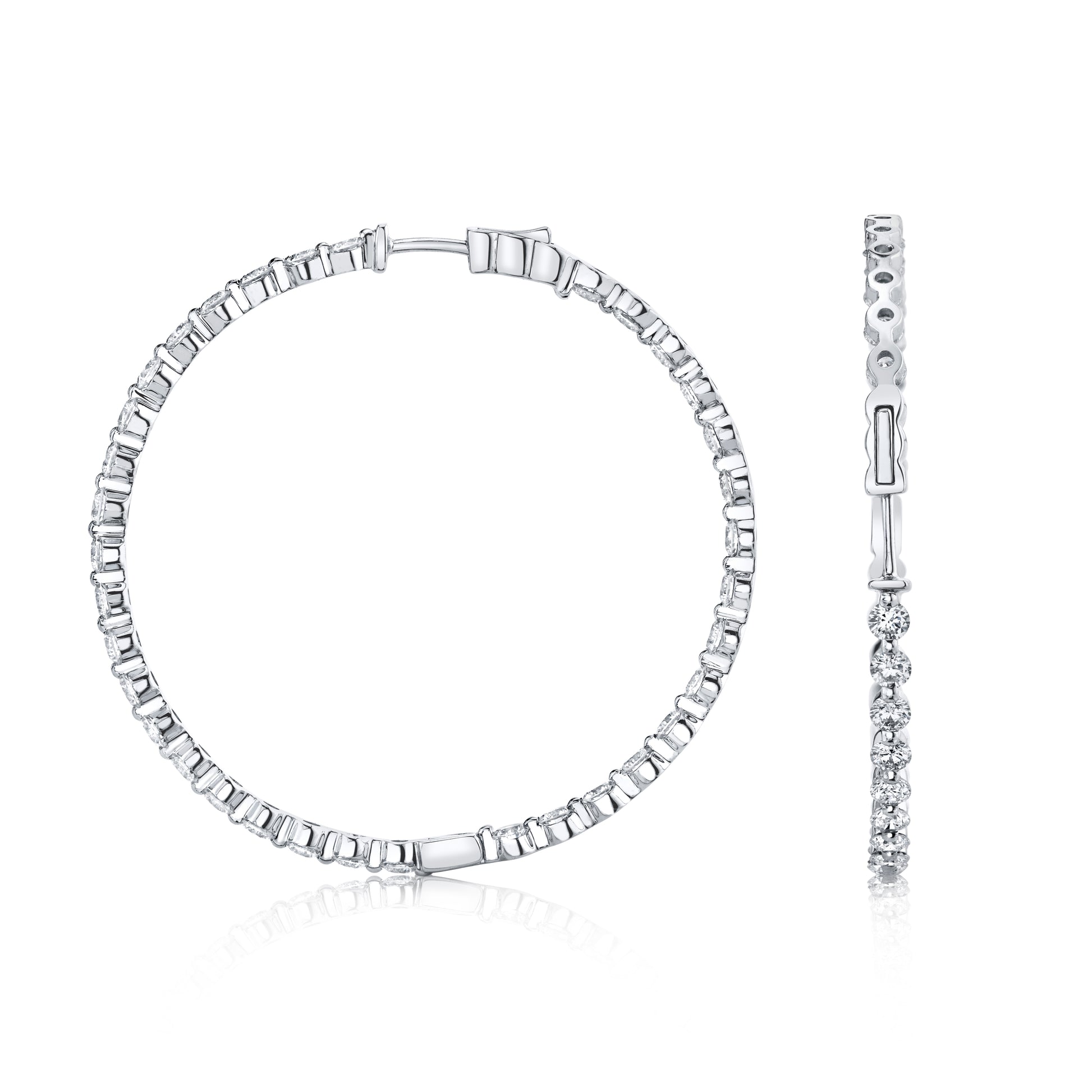 Dazzle and elegance meet in our Diamond Hoops – a stunning pair of 14K White Gold earrings, featuring a total of 5 carats of sparkling natural diamonds. These hoops will effortlessly elevate any outfit, adding a touch of timeless luxury and brilliance to your style.
