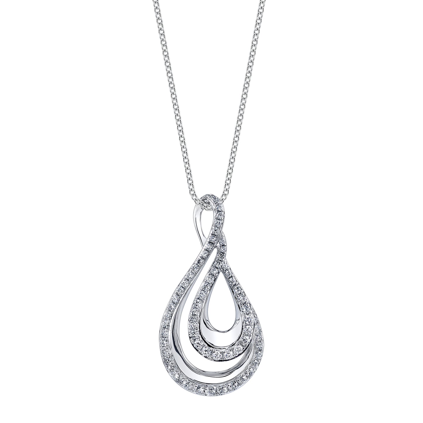 This 14k White Gold Double Twist Diamond Pendant features a stunning design adorned with approximately 0.47 carats of sparkling diamonds, making it an elegant addition to any jewelry collection.
