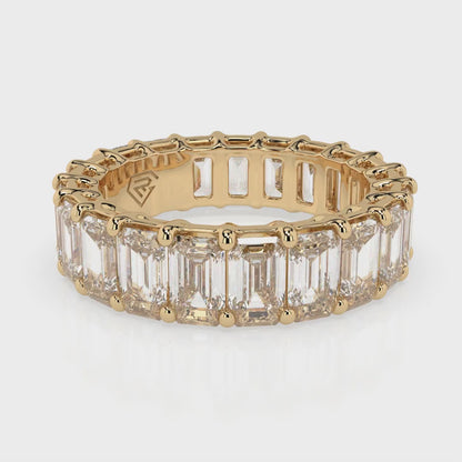 Fall in love with our Emerald Cut Diamonds Eternity Band! Set with 5.50 crt of lab-grown diamonds, it maximizes brilliance in a shared prong setting. Ideal as a wedding band or anniversary band, it's crafted to fit any lifestyle. Show your commitment with this sleek, sparkling band. Can be ordered in 14k, 18k, and Platinum.