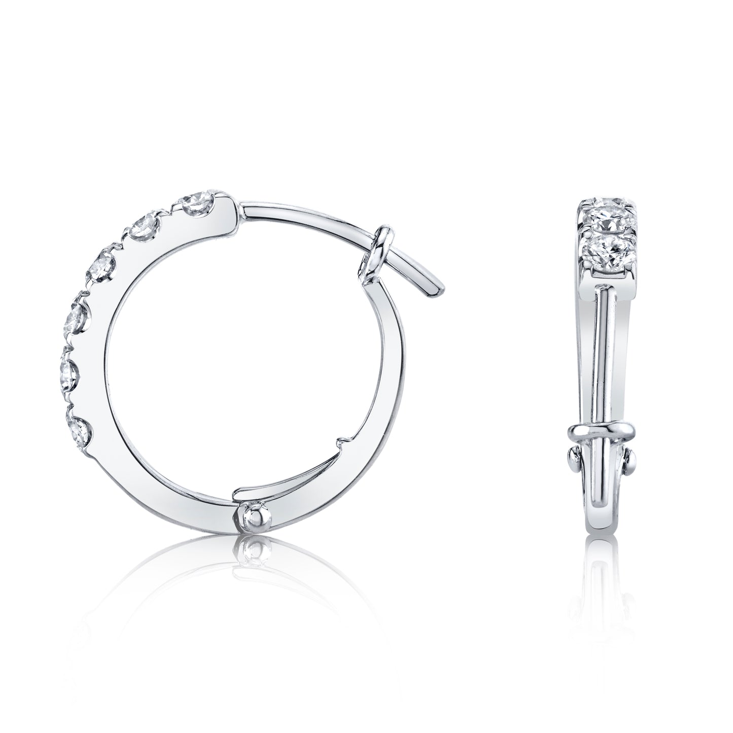 Dazzle and elegance meet in our Diamond Hoops – a stunning pair of 14K White Gold earrings, featuring a total of 0.75 carats of sparkling diamonds. These hoops will effortlessly elevate any outfit, adding a touch of timeless luxury and brilliance to your style.