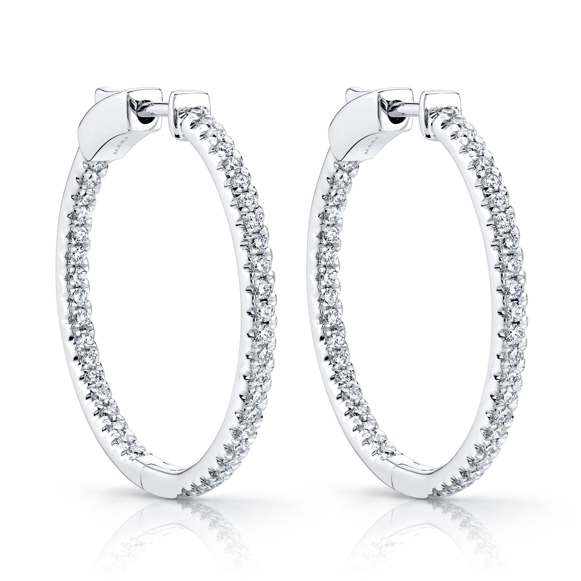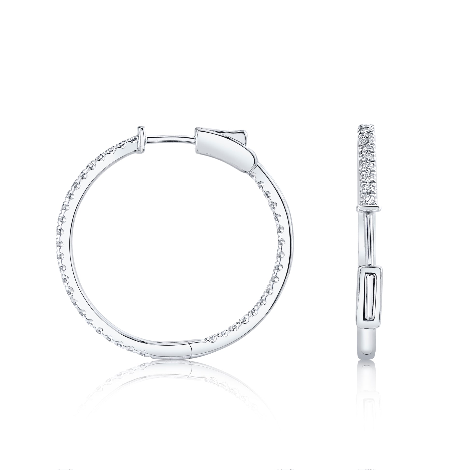 Dazzle and elegance meet in our Diamond Hoops – a stunning pair of 14K White Gold earrings, featuring a total of 0.70 carats of sparkling natural diamonds. These hoops will effortlessly elevate any outfit, adding a touch of timeless luxury and brilliance to your style.
