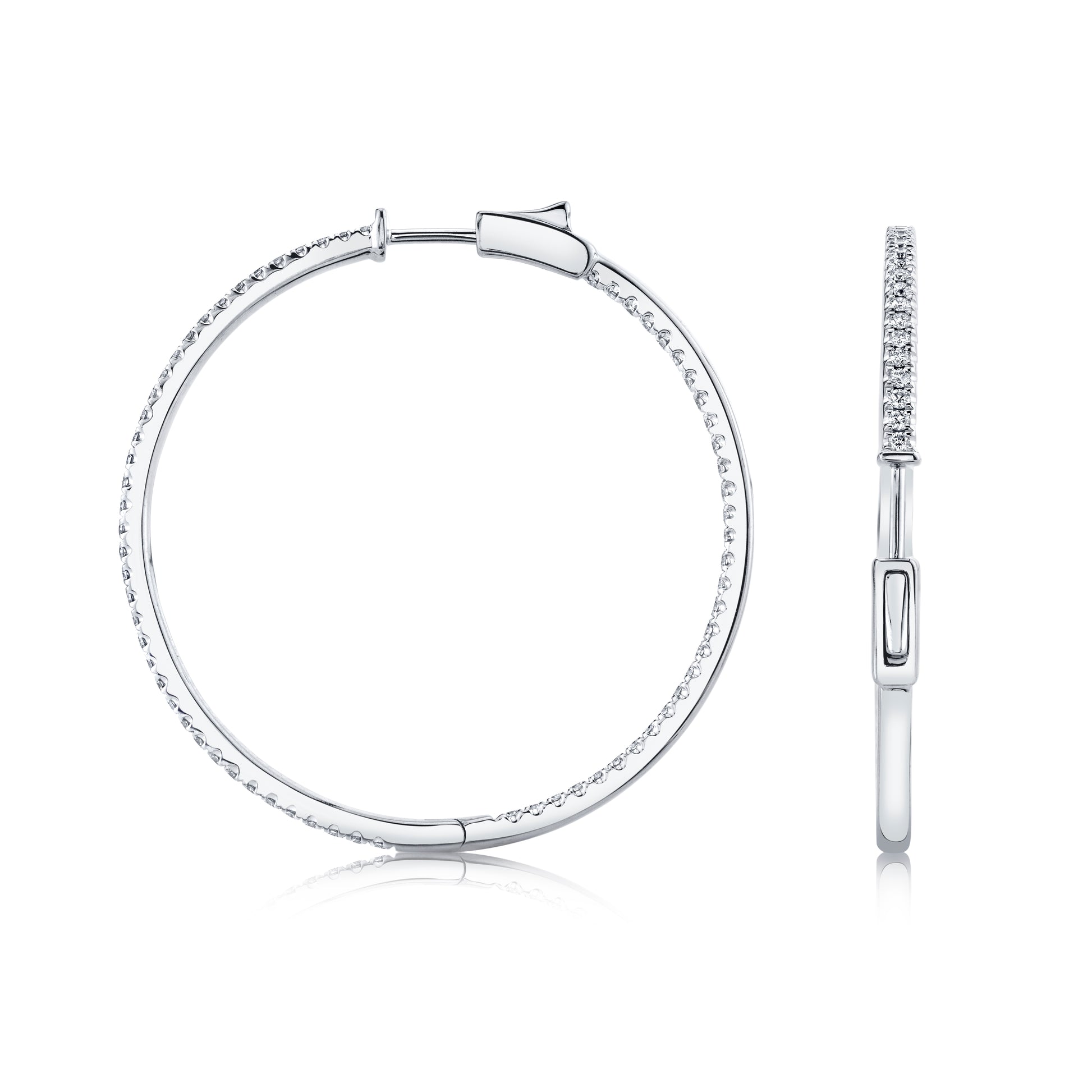 Dazzle and elegance meet in our Diamond Hoops – a stunning pair of 14K White Gold earrings, featuring a total of 1.15 carats of sparkling natural diamonds. These hoops will effortlessly elevate any outfit, adding a touch of timeless luxury and brilliance to your style.
