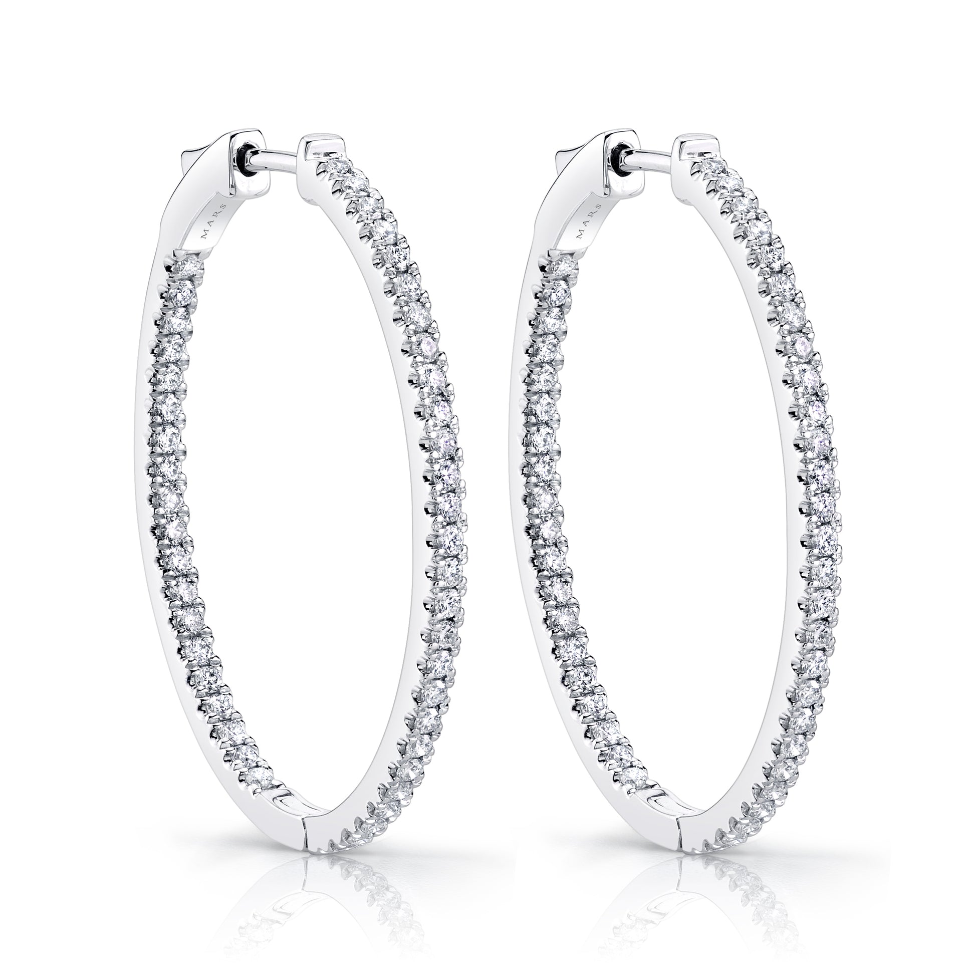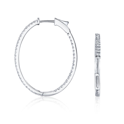 Dazzle and elegance meet in our Diamond Hoops – a stunning pair of 14K White Gold earrings, featuring a total of 0.80 carats of sparkling diamonds. These hoops will effortlessly elevate any outfit, adding a touch of timeless luxury and brilliance to your style.