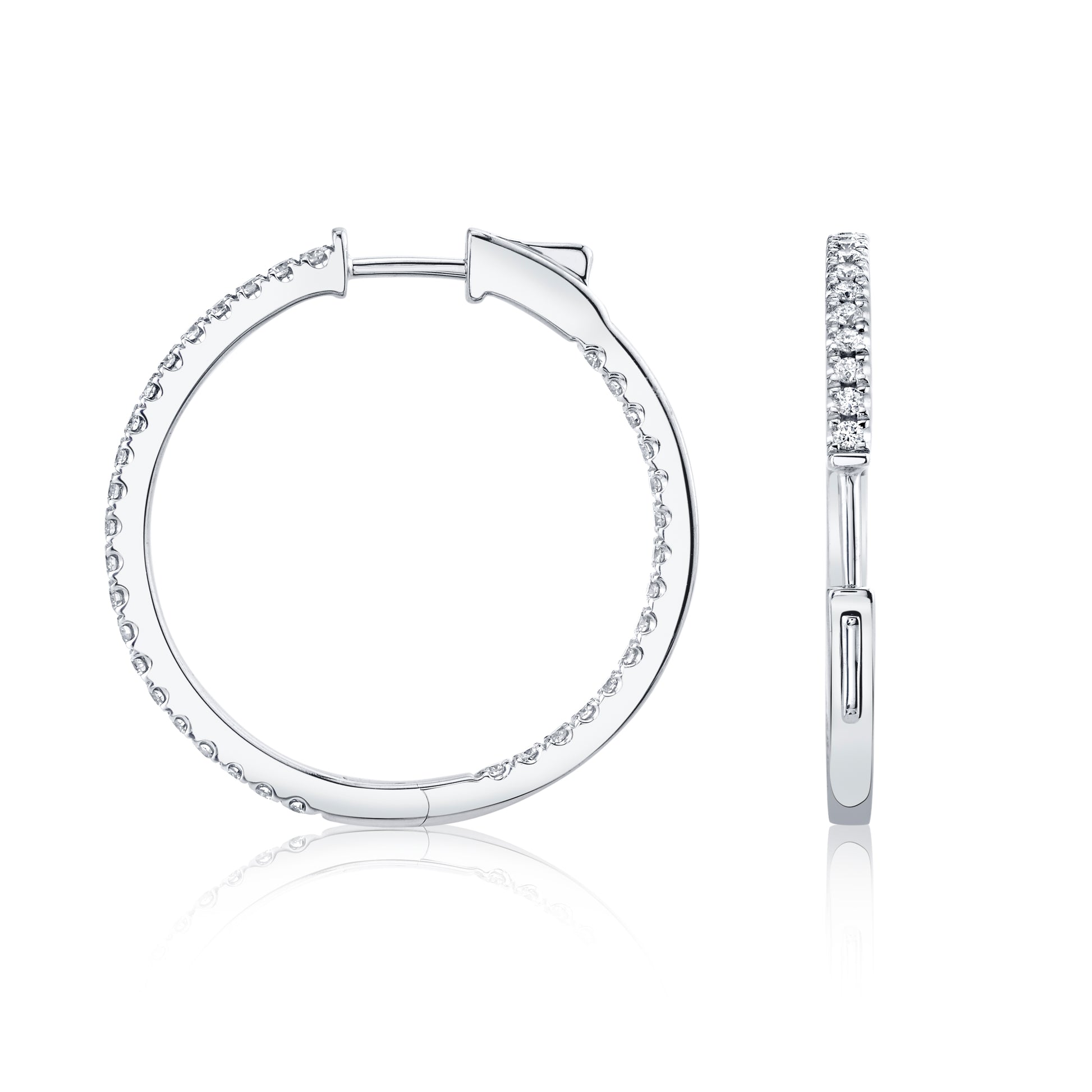 Dazzle and elegance meet in our Diamond Hoops – a stunning pair of 14K White Gold earrings, featuring a total of 0.85 carats of sparkling natural diamonds. These hoops will effortlessly elevate any outfit, adding a touch of timeless luxury and brilliance to your style.