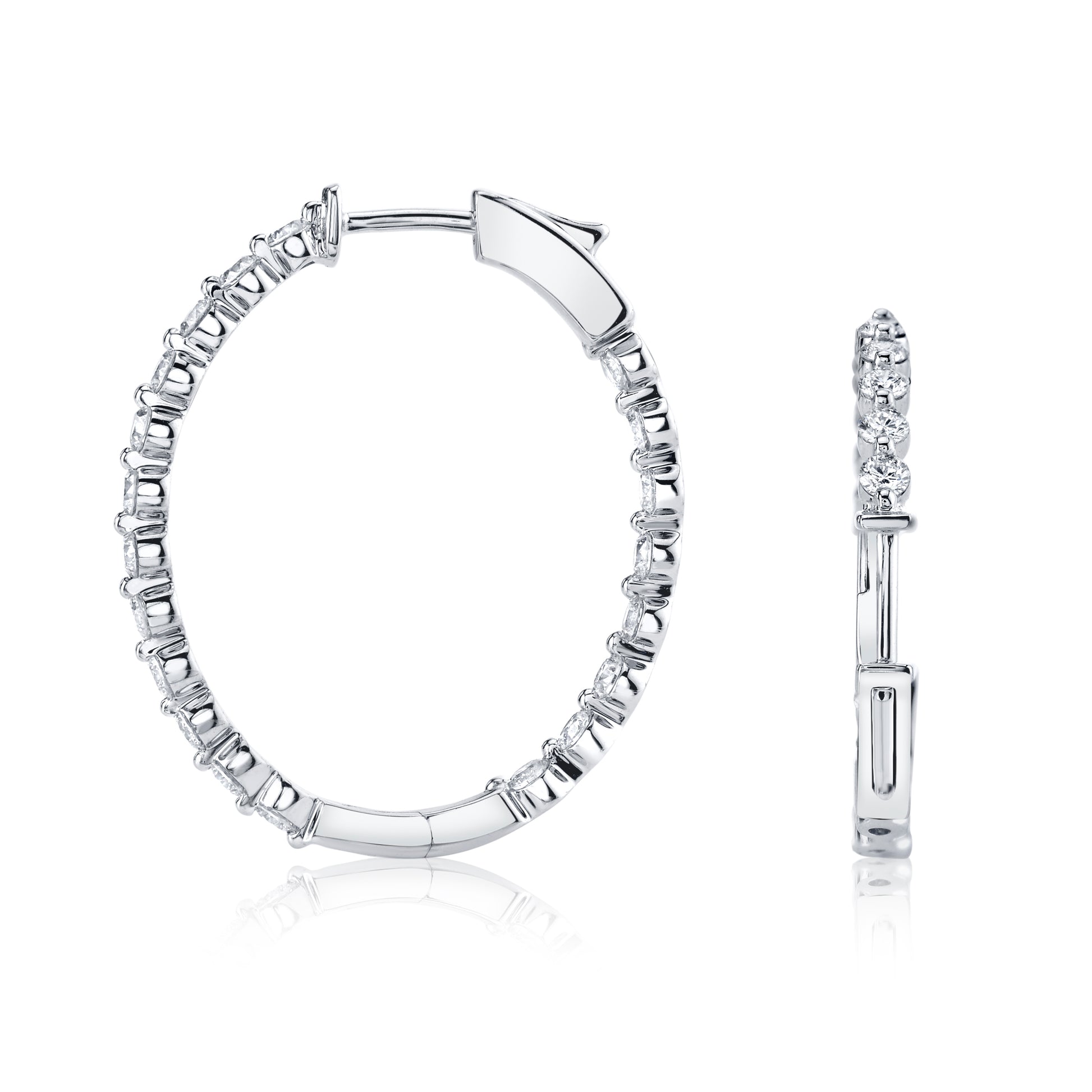 Dazzle and elegance meet in our Diamond Hoops – a stunning pair of 14K White Gold earrings, featuring a total of 1.40 carats of sparkling natural diamonds. These hoops will effortlessly elevate any outfit, adding a touch of timeless luxury and brilliance to your style.