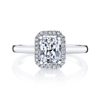 Mars Radiant/Emerald Halo Style Solitaire Engagement Ring 14K White Gold