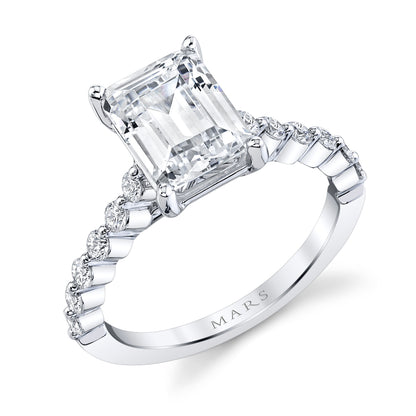 The Mars Emerald Engagement Ring in stunning 14K White Gold is adorned with a magnificent 0.42 crts of sparkling round cut diamonds on the sides, set in a classic prong style. Elevate your proposal with this exquisite ring that exudes luxurious elegance and will surely take her breath away.