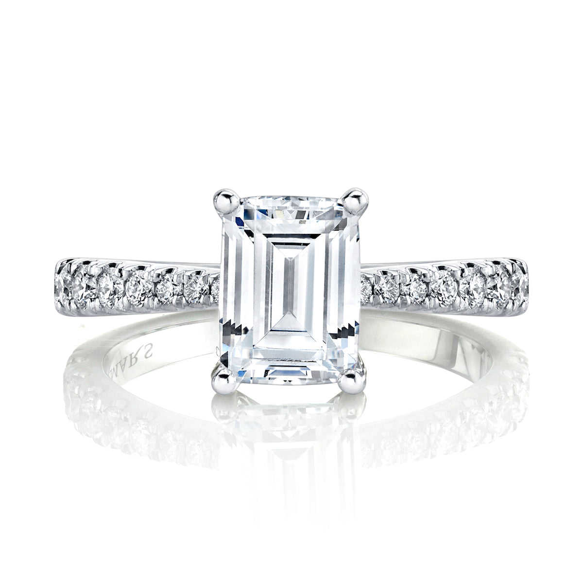 Indulge in the mesmerizing charm of our Mars Emerald Engagement Ring, expertly crafted from 14K White Gold and embellished with a breathtaking total of 0.35 carats in a delicate prong setting on the sides, while showcasing a sparkling 3 crt emerald cut center stone. Meticulously chosen, this lab-grown gem boasts a radiant e color and a dazzling vvs-2 clarity, certified by IGI. Every aspect has been carefully considered to embody grace, refinement, and eternal affection.