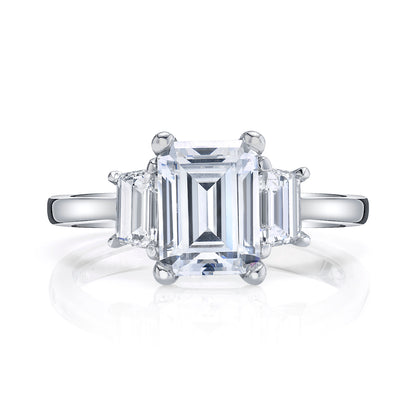 Mars Emerald Three Stone Engagement Ring 14K White Gold