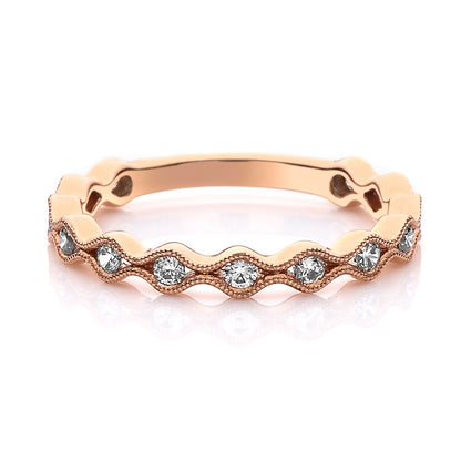 Introducing the stunning Mars Matching Wedding Band, crafted in 14K Rose Gold and adorned with 0.33 cts of sparkling round cut diamonds. The ring features delicate milgrain edging, adding a touch of elegance to the design. Perfect for stacking with your engagement ring, this band is a must-have for any bride-to-be.