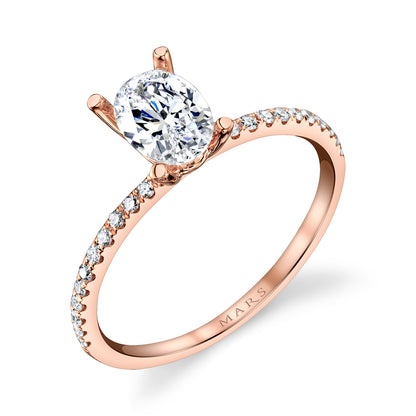 Experience the exquisite beauty of our Mars Oval Engagement Ring, made of stunning 14K Rose Gold. Adorned with a total of 0.16 carats of sparkling round cut diamonds, this ring will capture your heart with its elegant prong style setting.