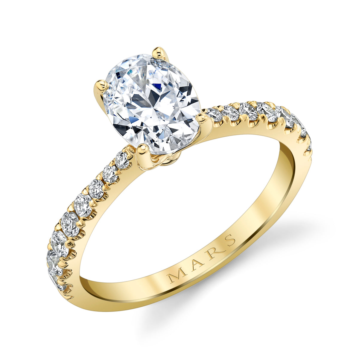 Experience the captivating beauty of the 14K Yellow Gold Mars Oval Engagement Ring. Featuring a dazzling 1.00 crt lab-grown oval shaped diamond in the center, surrounded by a prong style setting with sparkling round cut diamonds totaling 0.54 carats, this ring is a truly special and unforgettable piece that will elevate your love story. Dare to shine and make a statement with this exceptional ring.