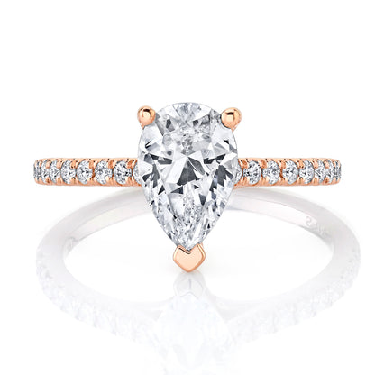Discover timeless elegance with the Mars Pear Engagement Ring, crafted in luxurious 14K rose gold. This stunning piece features a magnificent 2.50-carat pear-shaped lab-grown diamond at its heart, complemented by 0.23 carats of brilliant round-cut diamonds along the band. With E color and VS-1 clarity grades, this IGI-certified ring combines exceptional beauty with ethical sourcing. The total diamond weight reaches an impressive 2.73 carats, making this the perfect symbol of your commitment and refined taste.
