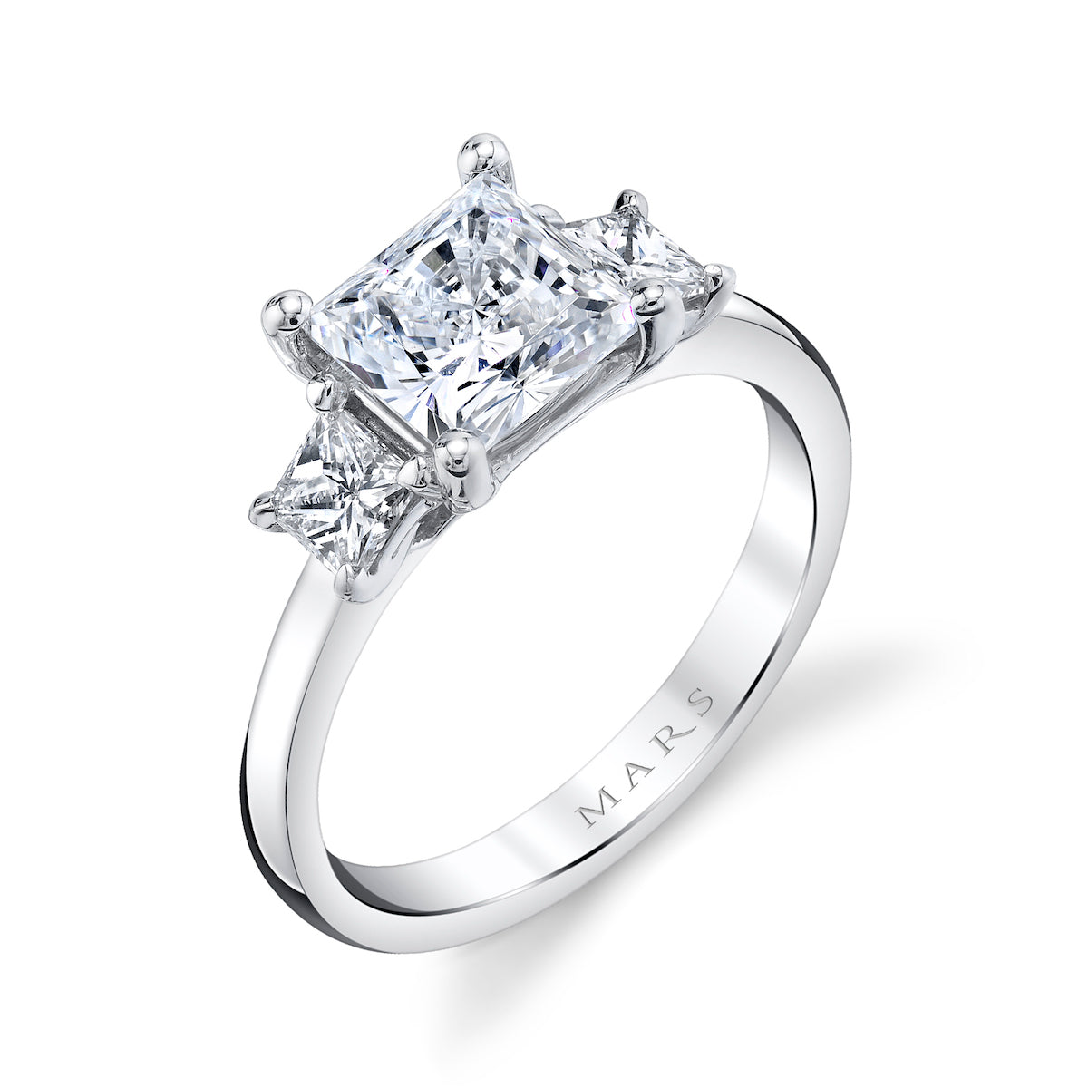 Experience the majesty and beauty of Mars Princess Engagement Ring, crafted in exquisite 14K white gold. The center stone is a dazzling 0.51 carat princess cut, surrounded by two additional princess cut stones in a unique tree stone setting. Elevate your love and make a statement with this stunning ring.